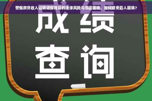 在当今社会,房贷已成为许多人实现购房梦想的主要途径,一些人为了顺利获得房贷,不惜采取弄假收入证明等不正当手段,这种行为不仅涉及违法犯罪问题,还可能引发一系列法律风险和道德困境,本文将深入探讨这一问题,提醒广大民众切勿以身试法。