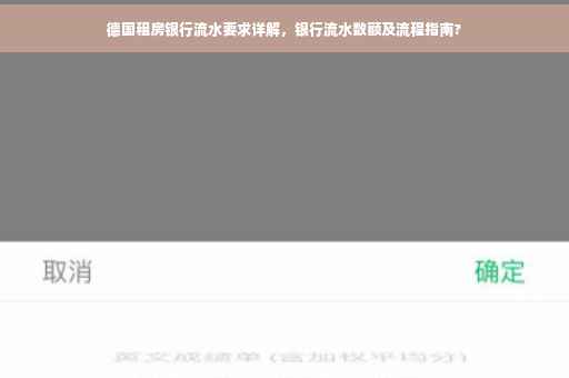 德国银行租房银行流水要求是租房过程中的重要环节,了解并满足这些要求,可以帮助租客顺利找到心仪的住所,在准备银行流水证明时,租客需要提前规划、保持账户活跃、避免大额转账等,还需要注意保持流水记录真实有效,并咨询专业人士了解具体的流程和注意事项,希望本文能为大家顺利租房提供帮助。