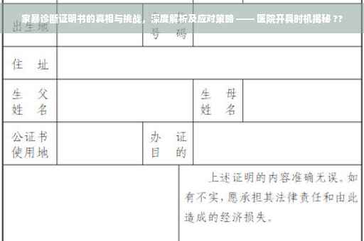 近年来,随着社会的进步和法治观念的普及,家庭暴力问题逐渐受到社会的广泛关注,家暴诊断证明书作为家暴受害者寻求帮助和维权的重要证据之一,其重要性日益凸显,本文将围绕家暴诊断证明书展开深入探讨,揭示其背后的真相与挑战,并提出应对策略。
