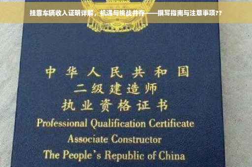 摘要:本文将详细介绍挂靠车辆收入证明的相关内容,包括其撰写方式和所面临的机遇与挑战。挂靠车辆收入证明对于车主和运输企业而言至关重要,它不仅反映了车辆运营的收入状况,也是评估运输业务经济效益的重要依据。本文将指导读者如何撰写规范的挂靠车辆收入证明,并探讨在这一过程中可能遇到的机遇与挑战,以便更好地把握市场机遇,提高运输业务的盈利能力。