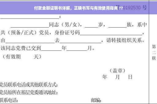 随着现代社会经济的发展,金融交易日益频繁,付款金额证明书作为一种重要的金融证明文件,广泛应用于各类交易、合同签署、工程结算等场景,正确书写和使用付款金额证明书对于保障交易双方的权益至关重要,本文将详细介绍付款金额证明书的主要内容、书写要点及使用注意事项,以便帮助读者更好地了解和运用这一证明文件。