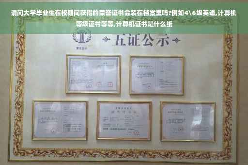 大学毕业生在校期间获得的荣誉证书会,例如4\6级英语,计算机等级证书等等.这些东东是国家认证的,当然会有记录的,当然不是把证书放在里面,放不下,但是里面有你的记录:如XX年,XX以XX分通过了国家英语四级等.但是另外的一种情况,如:你在学校的演讲比赛得奖,在作文大赛里面得奖,或者就是说班上或者社团里面获得奖,如果你上报了的话,会在你的每学期的记录上获奖情况那一栏有的,如果没有上报的话就没有了.学校现在应该都有素质拓展的认证吧,上面有详细的记录.北京反正基本的学校都有!放心吧,四六级,计算机啊是有的!!!:)