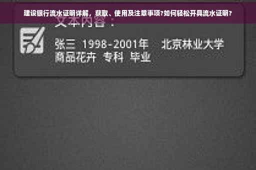 随着社会的快速发展,金融服务的需求日益增长,银行流水证明作为反映个人或企业资金状况的关键文件,其重要性愈发凸显,建设银行作为国内领先的金融机构,其银行流水证明服务在各个领域都发挥着重要的作用,本文将全面介绍建设银行银行流水证明的获取途径、应用场景及注意事项,以便广大客户更好地了解和运用。