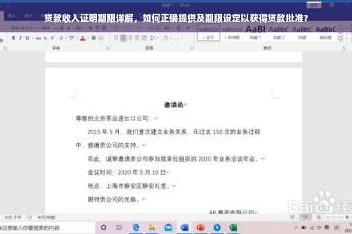 贷款收入证明的期限是指收入证明的有效时间,不同银行或金融机构对收入证明的期限要求有所不同,购房贷款可能需要提供近半年的工资流水和纳税证明,借款人需提前了解所申请贷款机构的具体要求,并准备相应的文件。