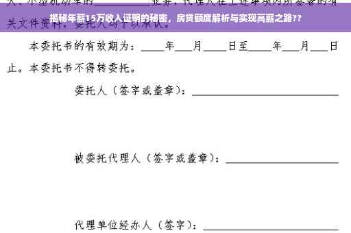 摘要:本文将介绍如何达到年薪15万,并探讨收入证明的重要性及其在房贷申请中的应用。通过深入了解收入证明的作用,我们将探讨年薪达到这一水平所需的技能和经验,以及如何利用收入证明来申请房贷。本文还将揭示收入证明与房贷额度之间的关系,帮助您了解收入证明对于贷款购房的实际影响。