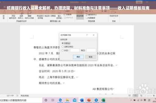 本文旨在为需要办理招商银行收入证明的客户们提供详尽的指南,从办理流程、所需材料、注意事项到收入证明的作用与意义,都将为您一一阐述,助您顺利获取收入证明,享受便捷金融服务。