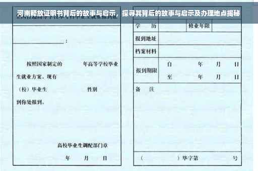 摘要:河南释放证明书是刑事司法程序中的重要文件,其背后蕴含着故事与启示。这份证明书的开具地点通常在河南省的司法机关,如法院、监狱等。通过了解如何获取河南释放证明书,人们可以一窥司法系统的运作,同时认识到司法公正的重要性。这份证明书不仅是对被释放人员重新融入社会的凭证,也是社会法治进步的体现。
