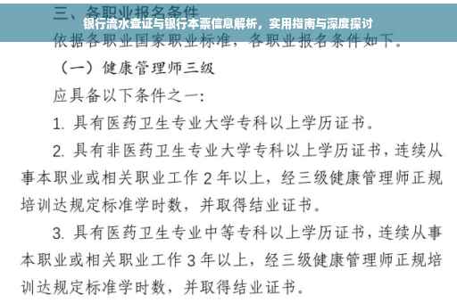 摘要:本文将深入探讨银行流水查证与银行本票的关系,解析两者之间的关联与差异。本文将详细介绍如何通过银行流水查证来获取银行本票信息,并解析其操作流程与注意事项。作为实用指南,本文旨在帮助读者更好地了解银行流水查证与银行本票的实用性和便捷性,以便在日常生活中更加便捷地处理银行业务。