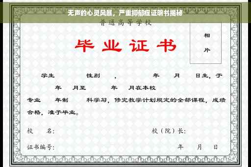 摘要:本证明书涉及严重抑郁症,这是一场无声的心灵风暴。患者可能经历长期的情绪低落、失去兴趣和快乐感,伴随睡眠问题和身体不适。严重抑郁症影响患者的日常生活和工作,需要及时诊断和治疗。本证明书旨在关注并提高对严重抑郁症的认识,帮助患者获得及时的支持和治疗。