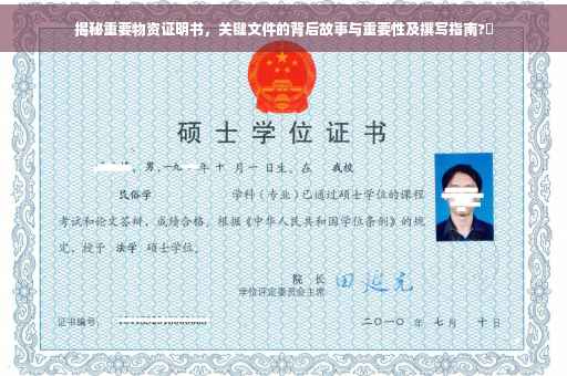 在当今社会,随着经济的快速发展和物资流通的日益频繁,各种证明书在我们的生活中扮演着越来越重要的角色,重要物资证明书尤为引人注目,什么是重要物资证明书?它的背后隐藏着怎样的故事?它为何如此重要?本文将为您一一揭晓。