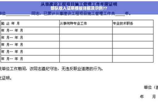 随着社会的不断发展,越来越多的人开始关注军队人员的收入情况,作为自媒体作者,我们有必要为广大读者提供关于部队收入证明模板的相关信息,本文旨在介绍部队收入证明模板的作用、内容要点以及填写注意事项,帮助大家更好地了解和使用这一模板。