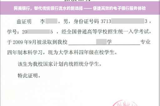 摘要:,,网商银行作为替代传统银行流水的新选择,以其高效便捷的金融服务赢得了广泛关注。通过网商银行,用户可以轻松获取替代银行流水账单的服务,无需繁琐的手续和等待时间。这一创新服务不仅简化了金融管理流程,还为用户提供了更多灵活选择,满足日益增长的金融需求。