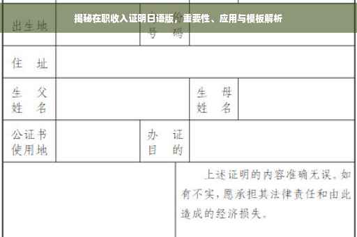 在现代社会,随着国际交流的日益频繁,掌握一门外语已成为许多职场人士的必备技能,日语作为东亚地区的重要语言之一,其在职场中的价值日益凸显,在职场中,无论是求职、晋升还是办理贷款等场合,提供一份有效的在职收入证明已成为不可或缺的一环,本文将深入探讨在职收入证明的重要性,并特别关注日语版在职收入证明的应用与解析。
