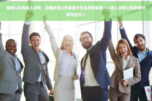 通过本文,我们了解了公积金收入证明的概念、作用、查询方式以及如何使用公积金提高生活质量,在日常生活和职业规划中,我们应该充分利用公积金制度,解决住房问题,提高生活质量,在使用公积金收入证明时,要注意真实性、合法性、保密性和及时更新等方面的问题,希望本文能对你正确使用公积金收入证明有所帮助。