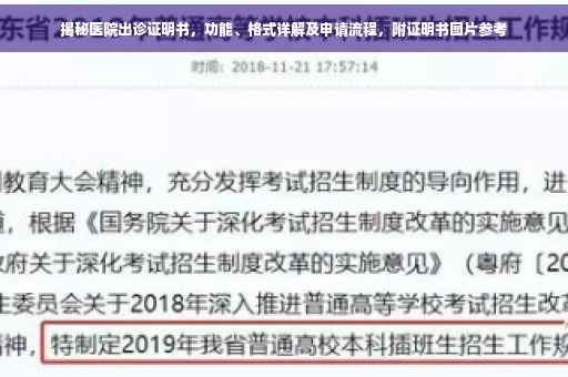 摘要:本文将详细介绍医院出诊证明书的功能、格式及申请流程。这份证明书是医院为患者提供的重要文件,旨在证明患者就诊的事实及病情。本文将指导读者了解证明书的各项内容,包括患者信息、诊断结果及医生建议等。还将提供出诊证明书的图片以供参考。通过阅读本文,您将全面了解如何申请并获得医院出诊证明书。