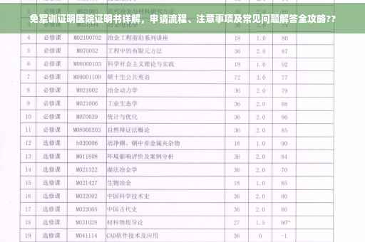 军训作为大学生活的特殊经历之一,旨在培养学生的纪律性、团队协作能力和身体素质,对于部分因身体原因无法参与的学生,免军训证明成为了一种必要的申请手段,本文将详细介绍免军训证明医院证明书的申请流程、注意事项以及常见问题解答,帮助大家更好地了解这一过程。