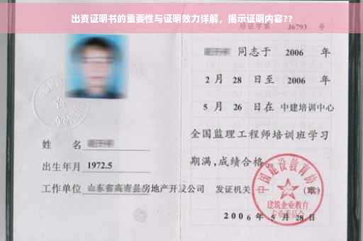 在当今社会,随着经济的发展和投资领域的繁荣,越来越多的人开始涉足投资领域,在这个过程中,出资证明书作为一种重要的文件,对于投资者和企业来说都具有不可忽视的意义,本文将详细探讨出资证明书能证明什么,以及其重要性和实际应用。