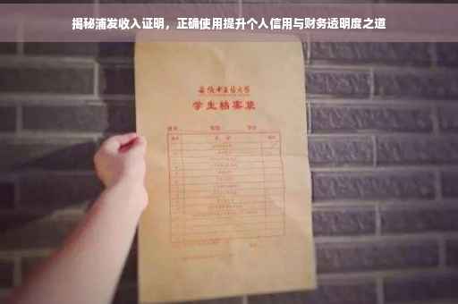 通过本文的介绍,我们了解了浦发收入证明的相关知识以及如何正确获取和使用收入证明,希望广大读者能够重视个人信用和财务透明度的建设,合理使用收入证明,提高自己的信用评级和审批成功率,我们也要提醒大家,在获取和使用收入证明的过程中,务必遵守相关法律法规,确保信息的真实性和安全性。