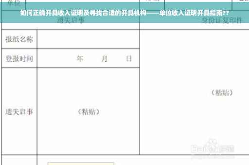 摘要:本文将介绍如何正确开具收入证明并寻找合适的开具机构。读者将了解到收入证明的重要性以及开具过程中需要注意的事项,包括选择正确的开具机构、提供必要的个人信息和资料等。通过阅读本文,读者可以了解到如何顺利开具单位收入证明,避免因操作不当而导致的不必要的麻烦。