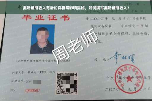 摘要:本文将探讨离婚证明收入的相关内容,揭示背后的真相及其对个人和社会的影响。本文将介绍如何撰写离婚证明收入,包括应注意的细节和要点,帮助读者了解离婚证明收入的重要性和必要性。本文还将分析离婚证明收入背后的原因和影响,引发读者对于离婚证明收入的深入思考和探讨。