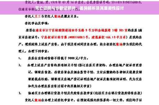 在现代社会,死亡证明和诊断证明书是两种常见的文件,它们在人们的生活中具有举足轻重的地位,这两份文件各自承载着重要的信息,对于处理后续事宜和保障个人权益具有关键作用,本文将详细介绍这两种证明书的区别及其在日常生活中的应用。