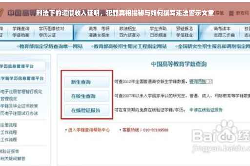 摘要:,,本文探讨了刑法下的造假收入证明问题,揭示了犯罪背后的真相。文章指出,造假收入证明是一种违法犯罪行为,涉及到伪造公文、欺诈等罪名。文章将介绍如何撰写刑法下的造假收入证明,并强调这种行为的社会危害性和法律后果。,,建议遵守法律法规,不要参与任何违法犯罪行为。