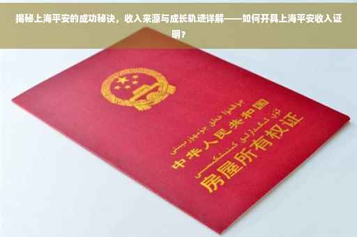 摘要:本文将介绍上海平安公司的收入来源与成长轨迹,并揭秘如何开具上海平安收入证明。作为成功企业,上海平安的收入来源多元化,包括保险、金融、医疗等多个领域。本文将指导读者了解开具收入证明的流程,包括所需材料、步骤和注意事项等,以便顺利获取收入证明,并了解企业的经济实力和发展潜力。