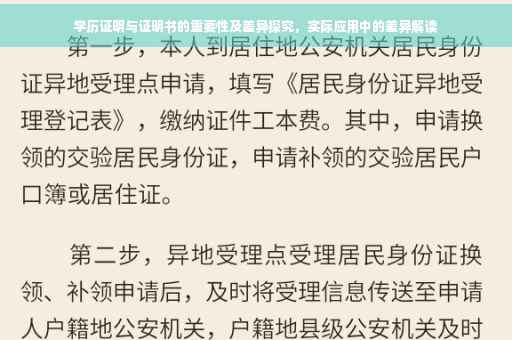 摘要:学历证明与证明书具有不同的含义和重要性。学历证明用于验证个人的教育背景和学历水平,对于求职、升学等场合至关重要。而证明书则是一种证明个人身份、经历或特定事实的文档,可用于多种场合如工作、法律等。两者在实际应用中各有其作用,不能混为一谈。