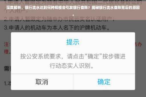 摘要:银行流水达到一定数额时,银行会进行审查。本文深度解析了背后的原因,介绍了银行流水审查的触发点以及审查过程。通过本文,读者可以了解银行对流水账单的监管标准,以及银行审查流水账单的目的和流程。文章内容旨在帮助读者更好地理解银行流水审查的重要性,并提醒读者注意个人财务安全。