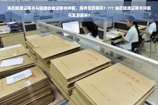 摘要:本文将详细解析海员健康证明书和健康检查证明书,探讨两者是否相同。文章指出,虽然两者都与健康检查有关,但它们的应用场景和目的不同。海员健康证明书是船员从事海上工作的必备证明,而健康检查证明书则是一般性的健康检查证明。通过本文,读者可以更好地了解两者的区别和用途。