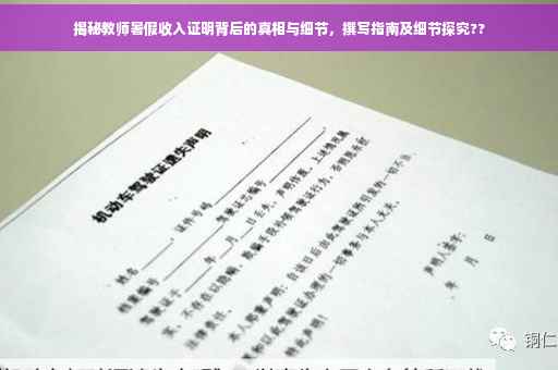 摘要:本文探讨了教师暑假收入证明的相关内容,揭示了背后的真相与细节。文章介绍了如何撰写教师暑假收入证明,包括收入证明的格式、内容要点以及注意事项等。通过本文,读者可以了解到教师暑假收入证明的重要性和必要性,以及撰写时需要注意的细节和要点。