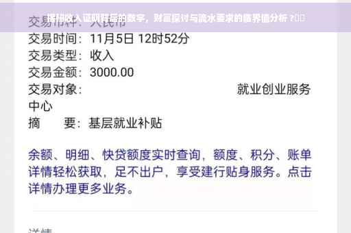 摘要:本文将探讨收入证明背后的数字,揭示财富背后的真相。文章将讨论收入证明金额达到何种程度需要提供银行流水证明,并深入分析收入证明的重要性及其对个人财富的影响。通过本文,读者将更好地理解收入证明与财富积累之间的关系。