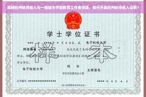 摘要:本文将揭示杭州地区一线学前教育工作者的待遇情况,介绍杭州幼师的收入证明如何开具。在一线城市中,学前教育工作者待遇备受关注,杭州幼师收入证明作为重要依据,对于了解行业收入水平具有重要意义。本文将提供相关的信息和指导,帮助读者了解杭州幼师的收入情况以及收入证明的开具流程。