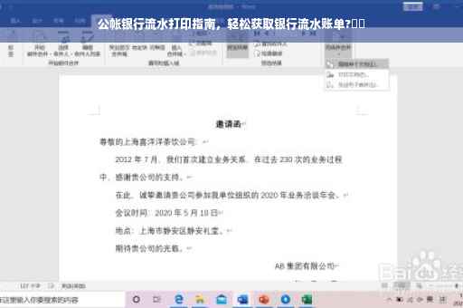 打印银行流水是企业财务管理的重要环节,需要认真对待,建议企业定期打印流水并妥善保管,以便日后查账、对账,关注银行推出的相关优惠政策和服务,为企业财务管理带来更多便利,本文旨在帮助大家更好地了解和掌握公帐如何打印银行流水的技能,为企业的财务管理工作带来帮助。