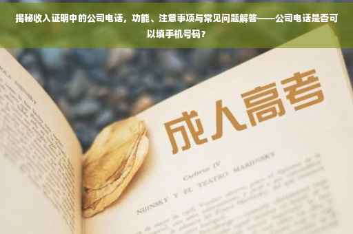 在当今社会,随着就业市场的竞争日益激烈,一份稳定的收入证明对于个人信用、贷款申请、租房等方面具有举足轻重的作用,而在这其中,公司电话作为收入证明的重要组成部分,往往被忽视或误解,本文将详细介绍收入证明中的公司电话的作用、注意事项以及常见问题解答,帮助读者更好地理解和利用这一信息。