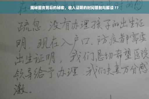 在现代社会,随着经济的发展和就业市场的繁荣,越来越多的人开始关注自己的收入状况,收入证明作为个人经济能力的重要凭证,广泛应用于求职、贷款、签证等领域,关于收入证明的时间,很多人可能并不清楚其中的细节和规定,本文将为您揭秘收入证明的时间背后的秘密,帮助您更好地了解自己的薪资状况。