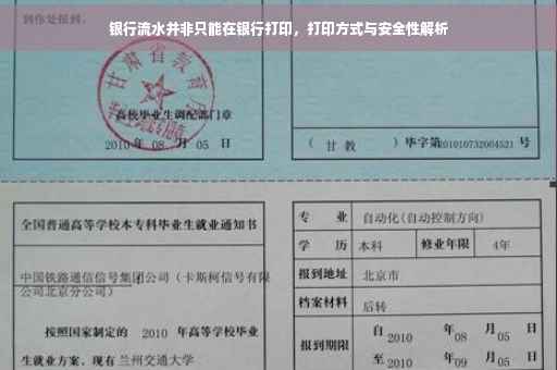 摘要:银行流水并非只能在银行打印,客户也可以通过网上银行、手机银行等电子渠道查询和打印。打印银行流水是否安全取决于客户选择何种方式以及是否保护个人信息。建议选择正规渠道,并注意保护个人信息,以确保安全。