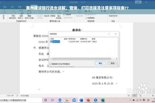 随着金融行业的快速发展,银行流水在我们的日常生活中扮演着越来越重要的角色,无论是办理贷款、信用卡,还是进行财务审计,银行流水都是一项重要的证明材料,本文将详细介绍惠州建设银行银行流水的查询、打印及注意事项,帮助广大市民更好地了解和使用银行流水。