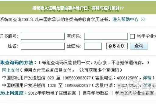 收入证明是否需要本地户口存在争议。这取决于具体情境和地区规定。某些情况下,收入证明可能需要本地户口作为证明,特别是在办理一些本地业务或享受某些福利时。但并非所有情境都需要本地户口。对此,建议根据具体情况咨询相关部门或机构,并提前做好准备。应对之策包括了解相关规定、保留好相关证明文件,并考虑其他替代方案。揭秘收入证明背后的真相,助你顺利应对。