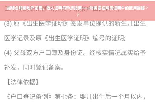 摘要:本文将揭示合肥房地产市场的现状,探讨收入证明在购房过程中的作用,以及购房指南的相关内容。本文将解答关于合肥买房收入证明是否可以盖财务章的疑问,帮助购房者了解相关政策和流程,为购房做好充分准备。