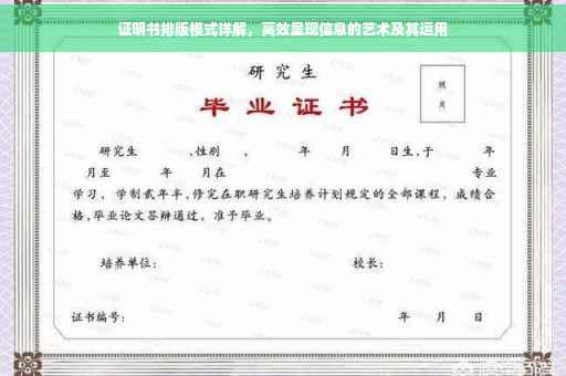 摘要:,,本文介绍了证明书排版模式及其在高效呈现信息方面的艺术。证明书排版模式是一种重要的文档排版方式,通过合理的排版设计,能够有效地传递信息和提高阅读体验。本文将探讨不同的证明书排版模式,包括字体、字号、行距、对齐方式等方面的应用,以展现其独特的艺术性和实用性。