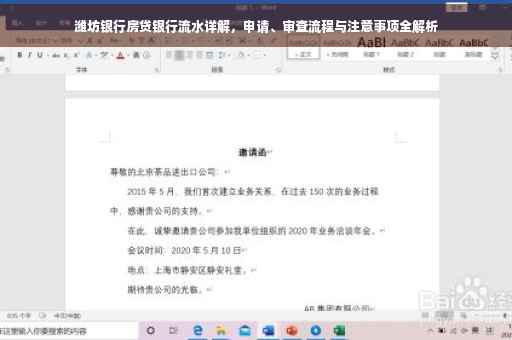 本文旨在为您提供关于潍坊银行房贷银行流水的全面信息,包括申请流程、审查要点、申请攻略及注意事项等,希望能为申请人提供有益的参考和帮助,确保顺利获得贷款。