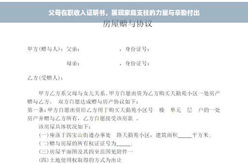 身为自媒体作者,我深知每一个家庭背后都有其独特的故事,尤其是那些支撑家庭生活的父母们,他们为了子女的成长和未来,默默付出辛勤努力,我将以“父母在职收入证明书”为主题,为大家揭示家庭支柱的力量与辛勤付出。
