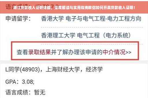 摘要:本篇文章是关于湛江贷款收入证明的深度解读与实用指南。文章详细介绍了如何开具湛江贷款收入证明,包括准备材料、填写要求、注意事项等。通过本文,读者可以了解贷款收入证明的重要性,以及如何正确、高效地开具该证明,从而顺利申请贷款。