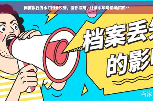 本文详细介绍了在网商银行打印银行流水的操作步骤、注意事项以及解决常见问题的建议,为了更好地使用这项服务,读者应注意以下几点:确保在安全的网络环境下操作;核对流水文件的真实性;妥善保管并备份流水文件,希望本文能帮助读者更好地管理个人财务,享受便捷的网上银行服务。