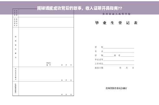 摘要:本文将介绍通威收入证明的重要性及其背后的成功故事。通过了解如何开具通威收入证明,读者可以更好地理解成功背后的辛勤努力和付出。本文将提供详细的步骤和相关信息,以帮助需要开具通威收入证明的人士顺利完成申请。通过本文的介绍,读者可以了解到成功并非一蹴而就,而是需要不断努力和坚持的过程。