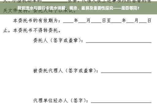 在现代社会中,随着经济的发展和个人财务的日益复杂化,越来越多的人开始关注个人财务管理的重要性,税前流水和银行卡流水作为个人财务管理中的两个重要概念,对于个人理财、税务申报以及企业经营等方面都具有重要意义,本文将详细解析税前流水和银行卡流水的概念、区别以及重要性,帮助读者更好地理解这两个概念在个人财务管理中的作用。