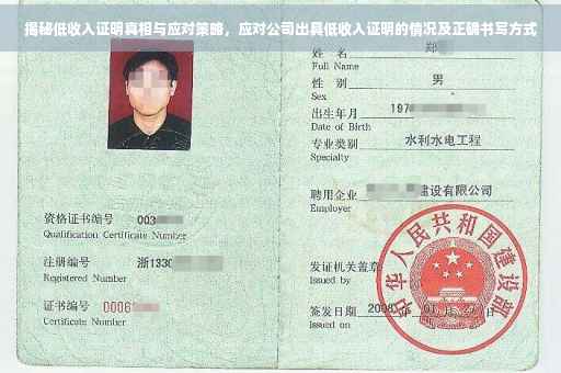 摘要:本文将揭示低收入证明背后的真相,探讨公司出具低收入证明的情况及其背后的原因。本文还将介绍如何正确应对这种情况,包括如何应对可能的法律风险和保护自身权益。还将介绍低收入证明的写作要点和注意事项。让读者了解如何应对公司出具低收入证明的情况,维护自身合法权益。