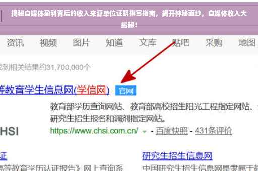 摘要:本文将介绍自媒体盈利的神秘面纱,并重点讲解收入来源单位证明的撰写方法。通过本文,读者将了解到如何证明自己的收入来源,以便在自媒体领域获得收益。本文将提供简洁明了的步骤和要点,帮助读者快速掌握如何撰写收入来源单位证明,为自媒体盈利之路提供有力支持。