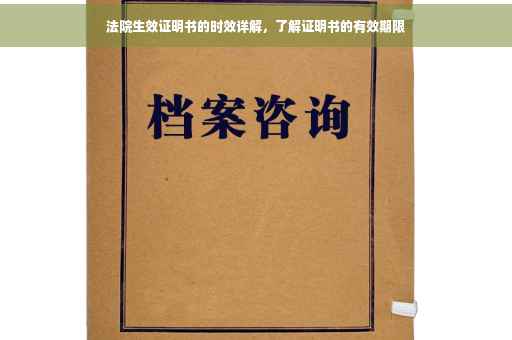以一起房产纠纷案为例,当事人张某在获得法院判决后,需凭借法院出具的生效证明书办理房产过户手续,若张某未能及时获取或证明书的时效性受影响,可能导致无法顺利办理,了解证明书的时效性及使用方法对当事人至关重要。